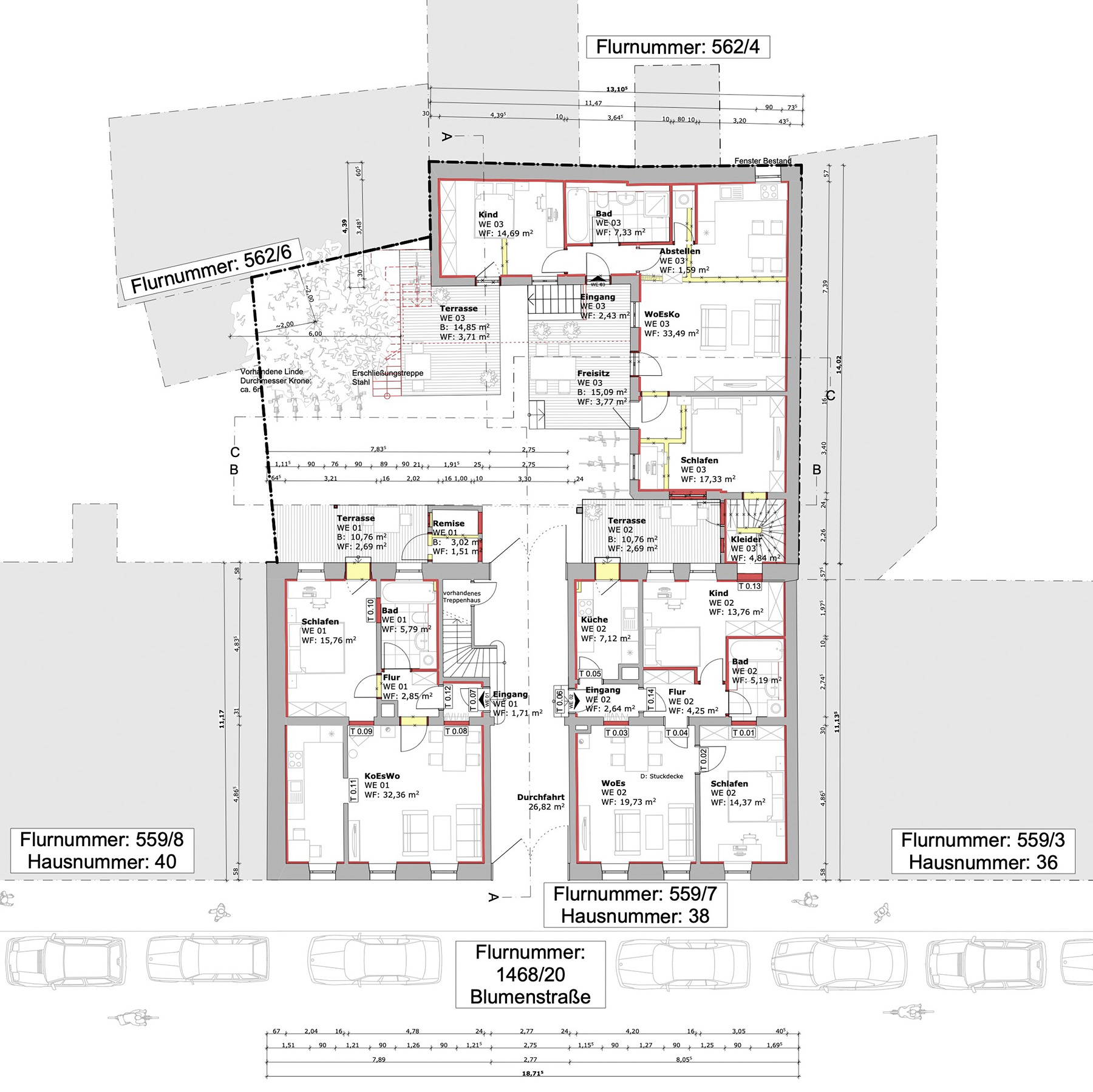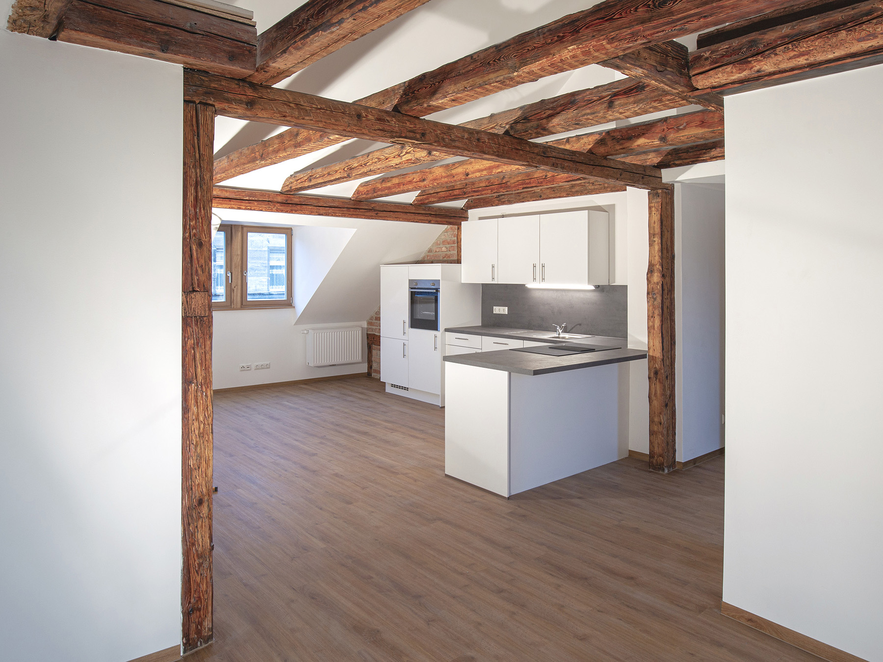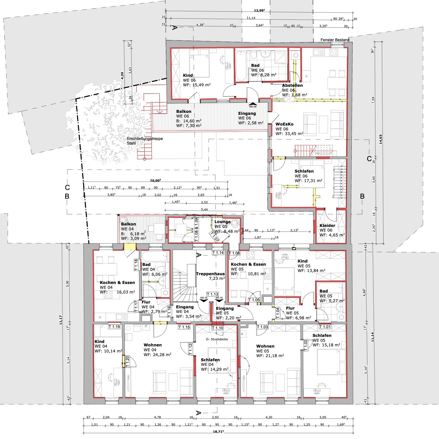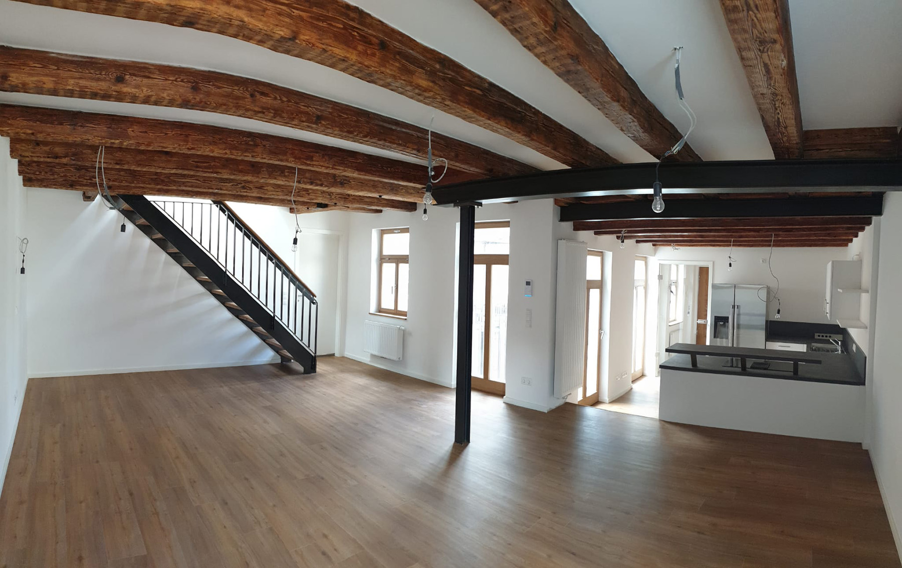 Die Farbegestaltung erfolgte nach Bemusterung und Absprache mit der USD-Behörde. Im Ganzen entstanden 10 Wohneinheiten in Vorder- und Rückgebäude mir einer Gesamtwohnfläche von ca. 820 m². Jede der Wohneinheiten ist mit einem Balkon, einer Terrasse oder einer Lounge zum Hof hin orientieret ausgestattet.
