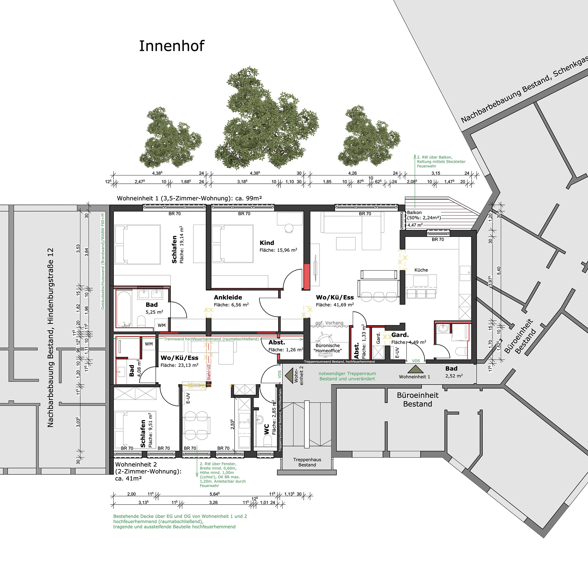 Einbau von zwei Wohnungen anstelle einer Büroeinheit