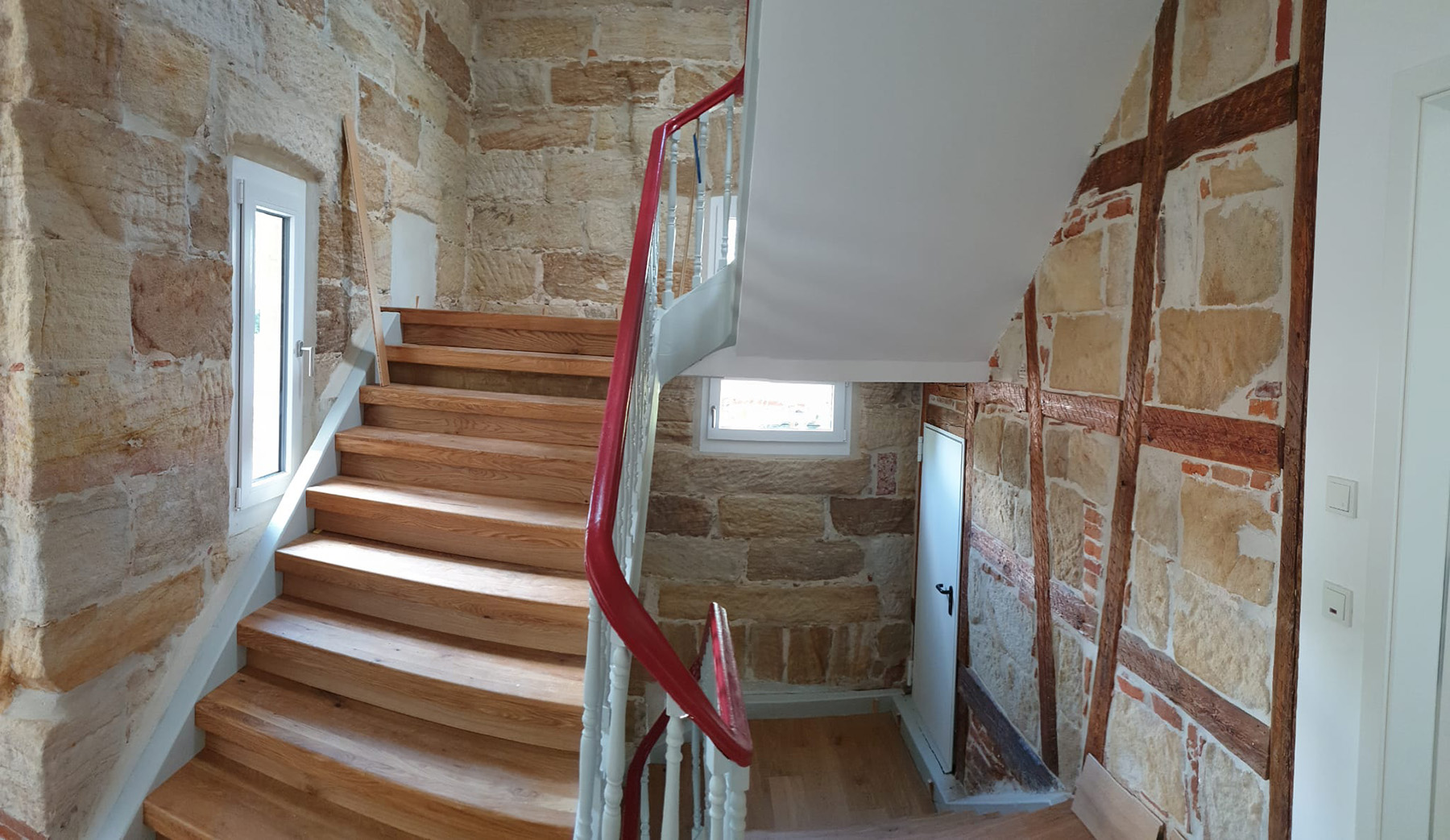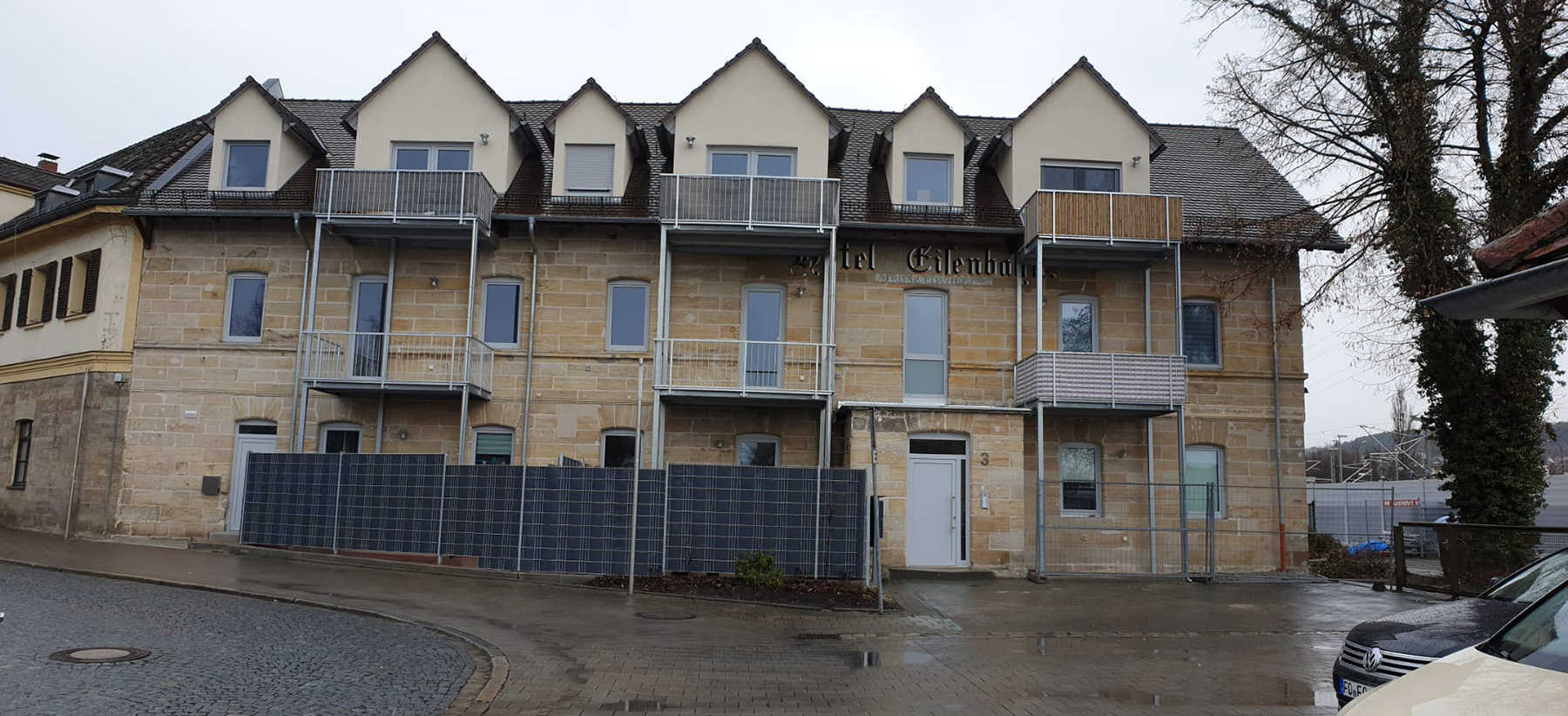 Am 01. September 1844 wurde die Eisenbahnstrecke zwischen Nürnberg und Bamberg eröffnet. Das Baujahr des Hotels Eisenbahn ist nicht genau bekannt, das Gebäude wird aber in einer Zeitungsreklame aus dem Jahr 1851 für die Vorstellung eines Zauberkünstlers das erste Mal erwähnt, war also zu diesem Zeitpunkt bereits erbaut; somit dürfte es sich um eines der ältesten noch existierenden Bahnhofshotelgebäude in Deutschland handeln. Das Gebäude war zum Zeitpunkt der Neuplanung und der Erstellung des Sanierungskonzepts bereits längere Zeit leer gestanden und im Laufe der Jahre unterschiedlichen Nutzungen unterworfen. Erdgeschossig Dart-Kneipe, Döner-Bude, Pizzeria, im ersten Obergeschoss und Dachgeschoss verschiedene Wohnnutzungen. Das Gebäude wurde kernsaniert, ein neues statisches Konzept entwickelt und umgesetzt. Es wurden große Sattelgauben auf den bestehenden Dachstuhl aufgesetzt und südseitig Balkone vor das Gebäude aufgeständert. Es wurden 9 Wohnungen mit einer Gesamtwohnfläche von ca. 550 m² Wohnfläche geschaffen.