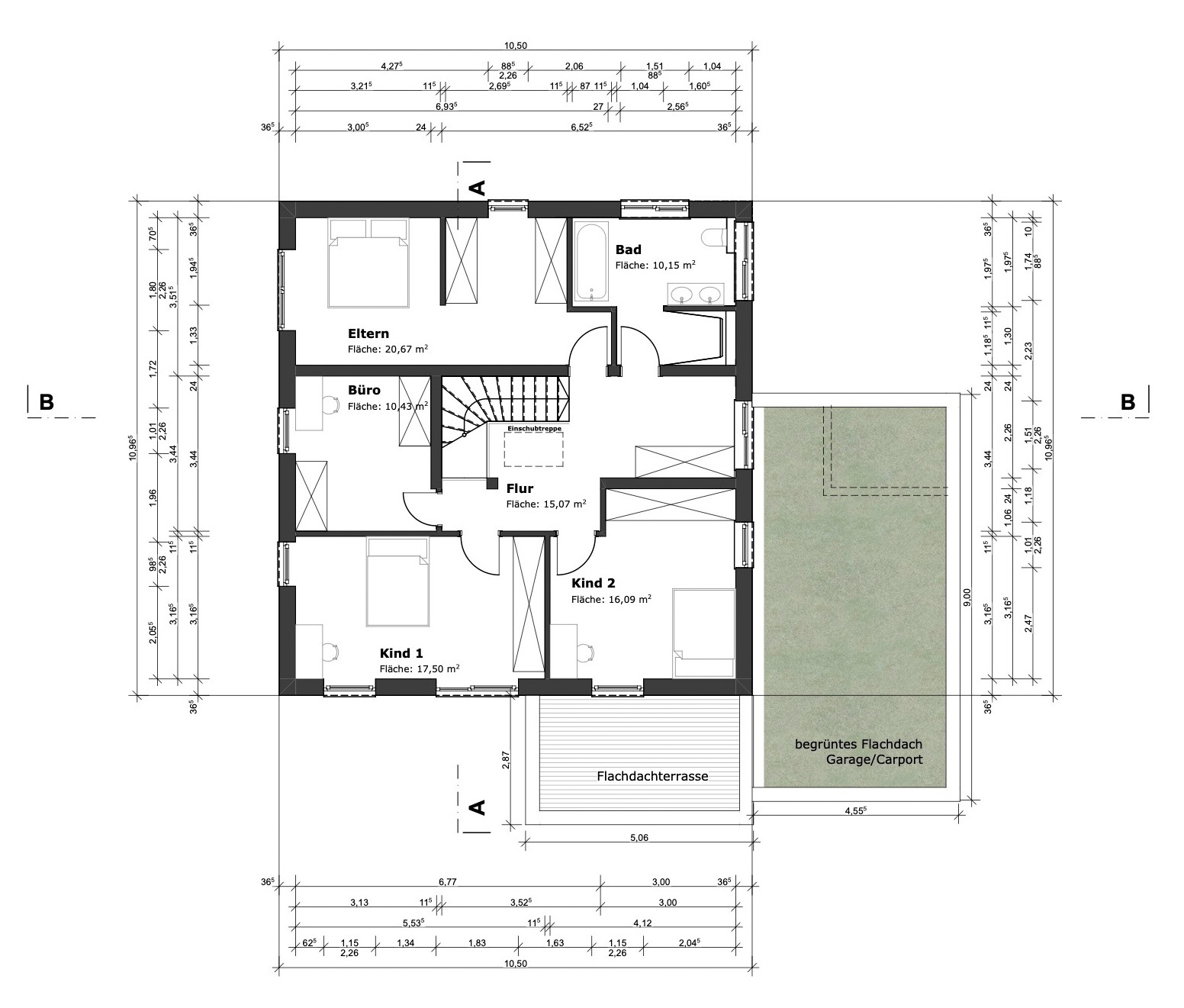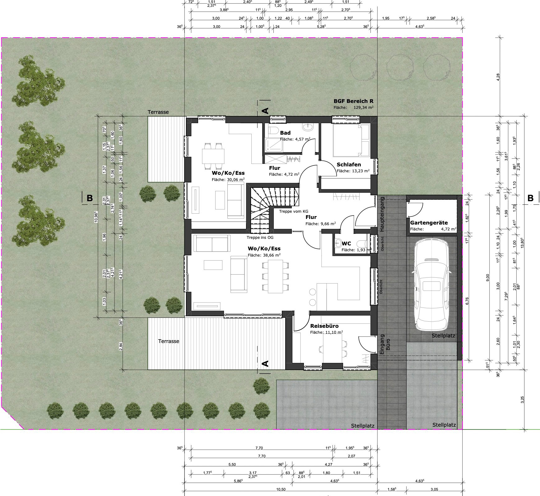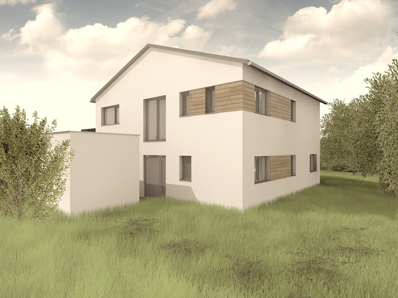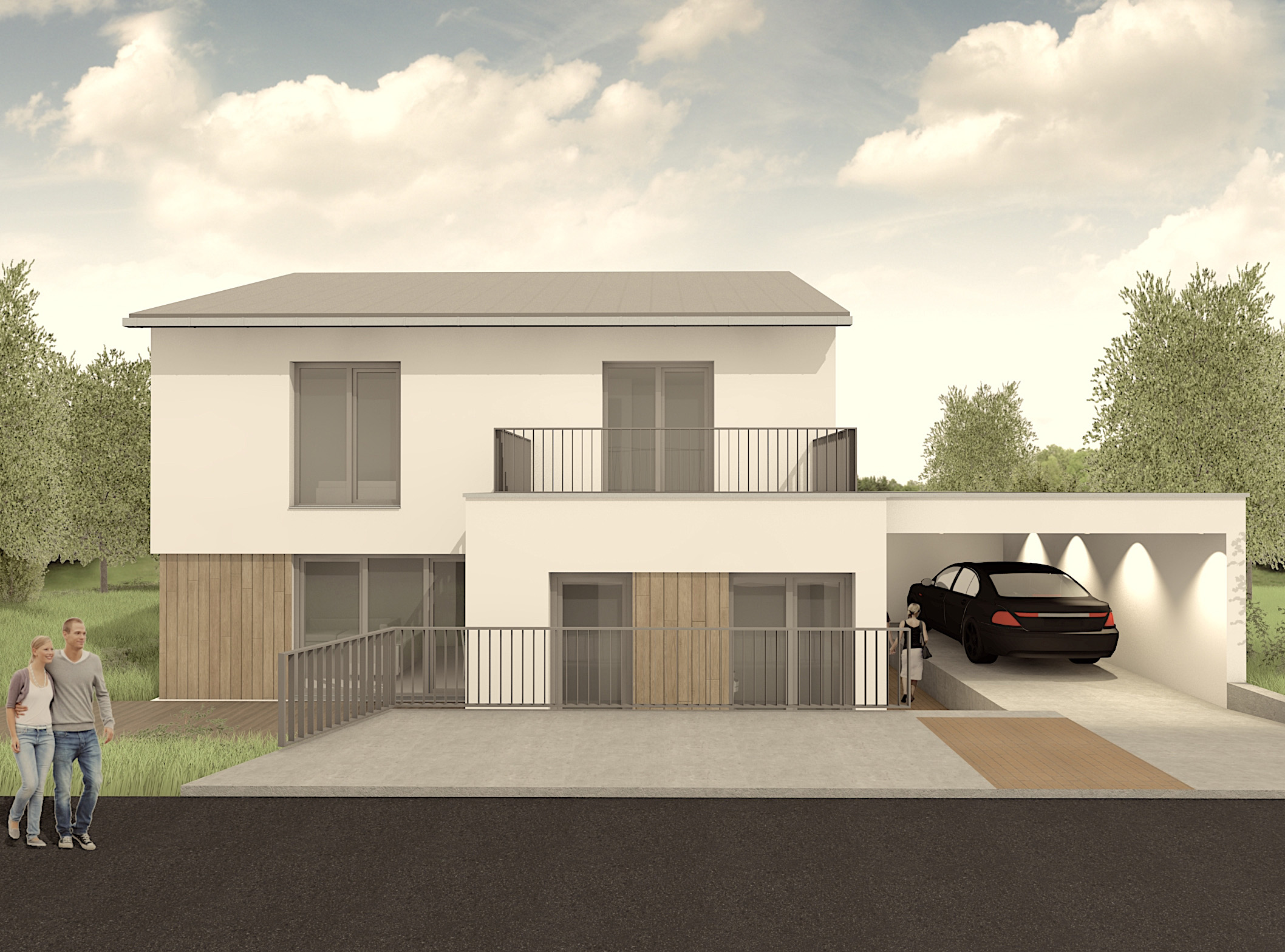 Neubau Wohnhaus mit zwei Nutzungseinheiten, Büro und Carport.