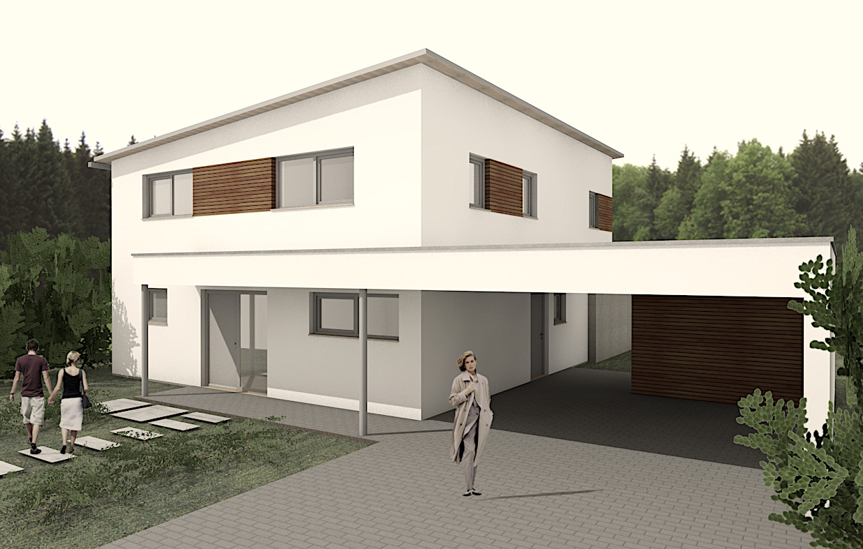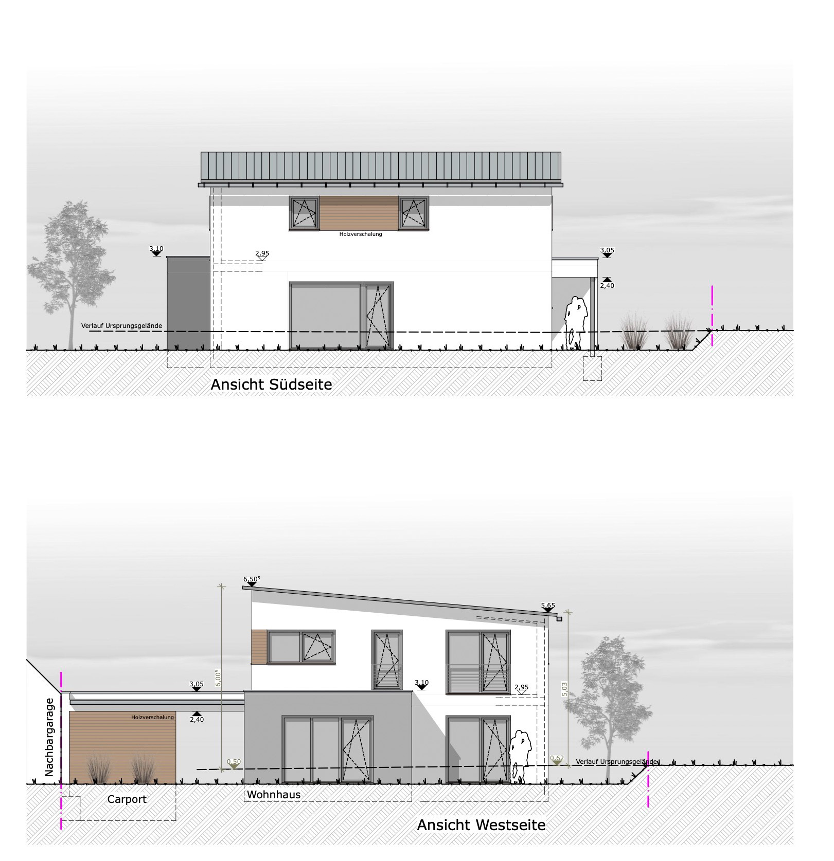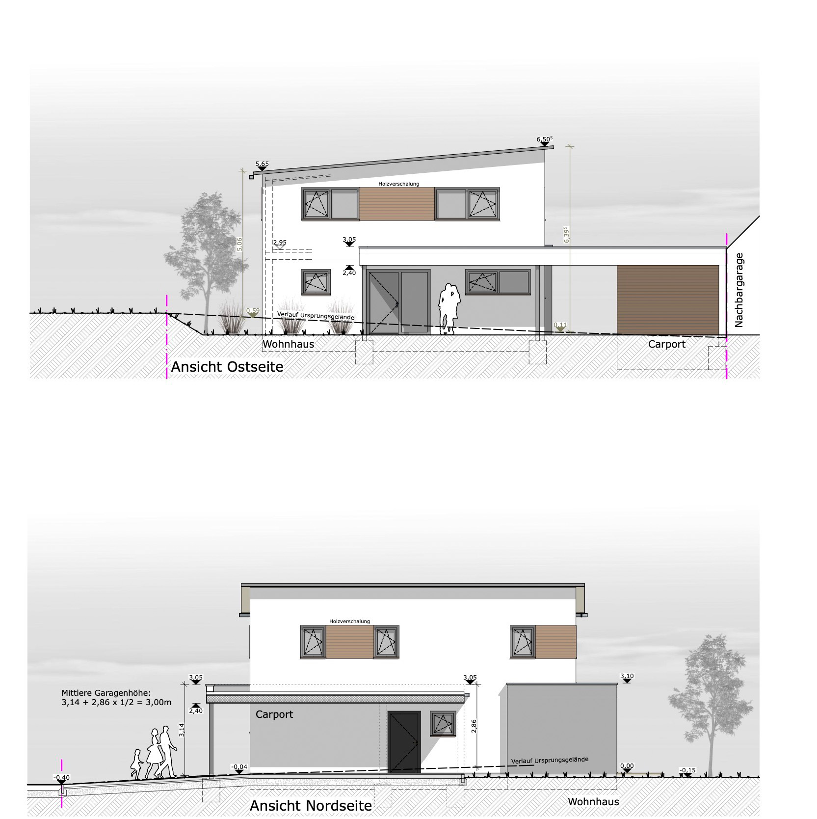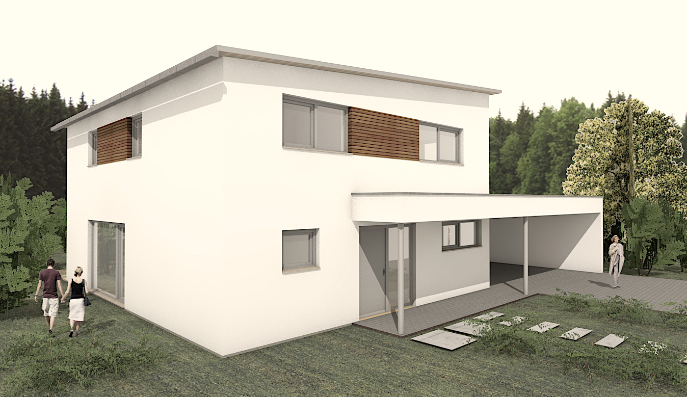 Neubau Einfamilienwohnhaus mit Carport in Holzbauweise (Holzmassivmauerwerk).